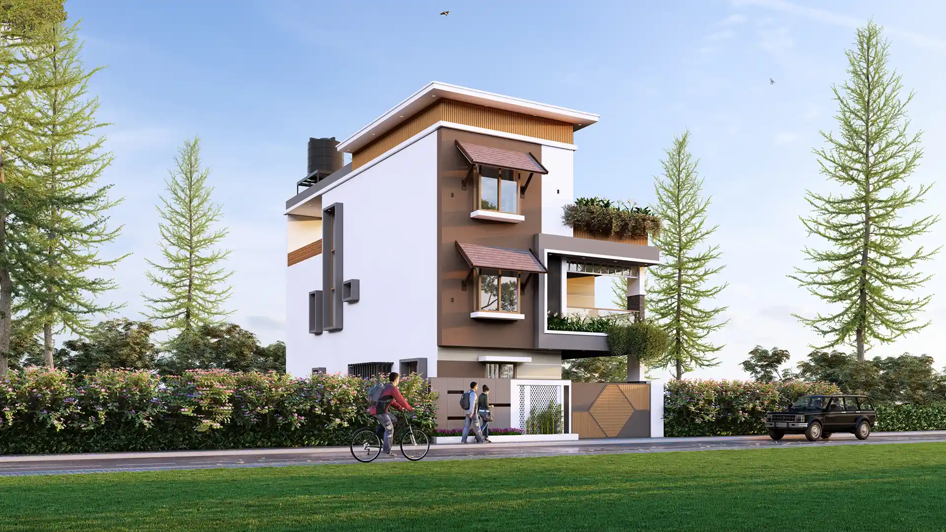 This home stands out not just for its design but also for the high-quality construction. Makers Associates used the best materials and ensured every detail was finished perfectly. The parking space inside the compound is secure and convenient, with a strong designer gate at the entrance. The surroundings are full of greenery, making the house feel peaceful and fresh. Mr. Sachin’s home is a great example of how smart design, quality work, and nature can come together beautifully.
